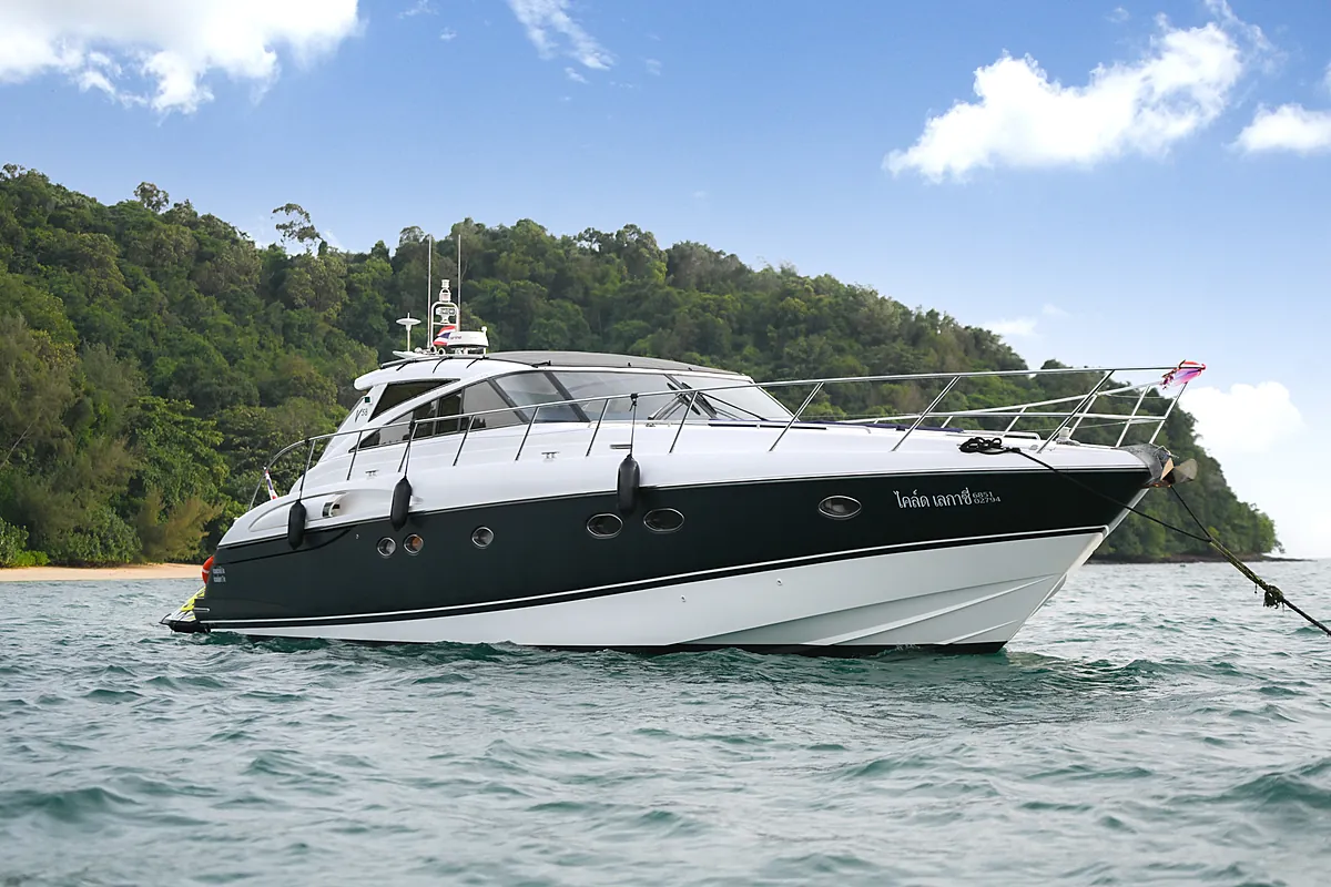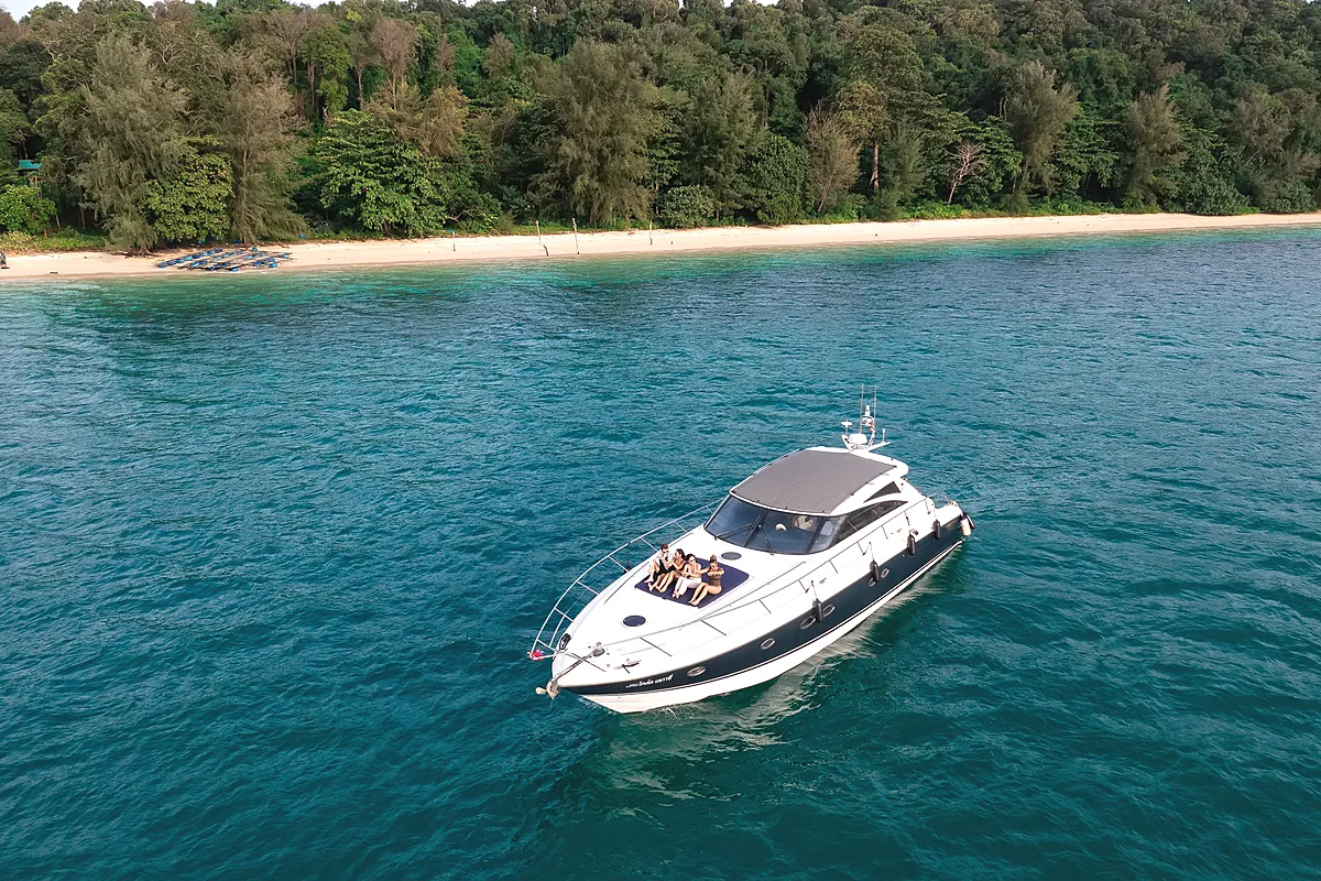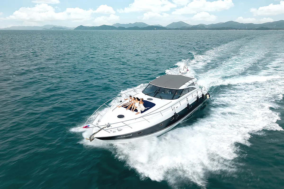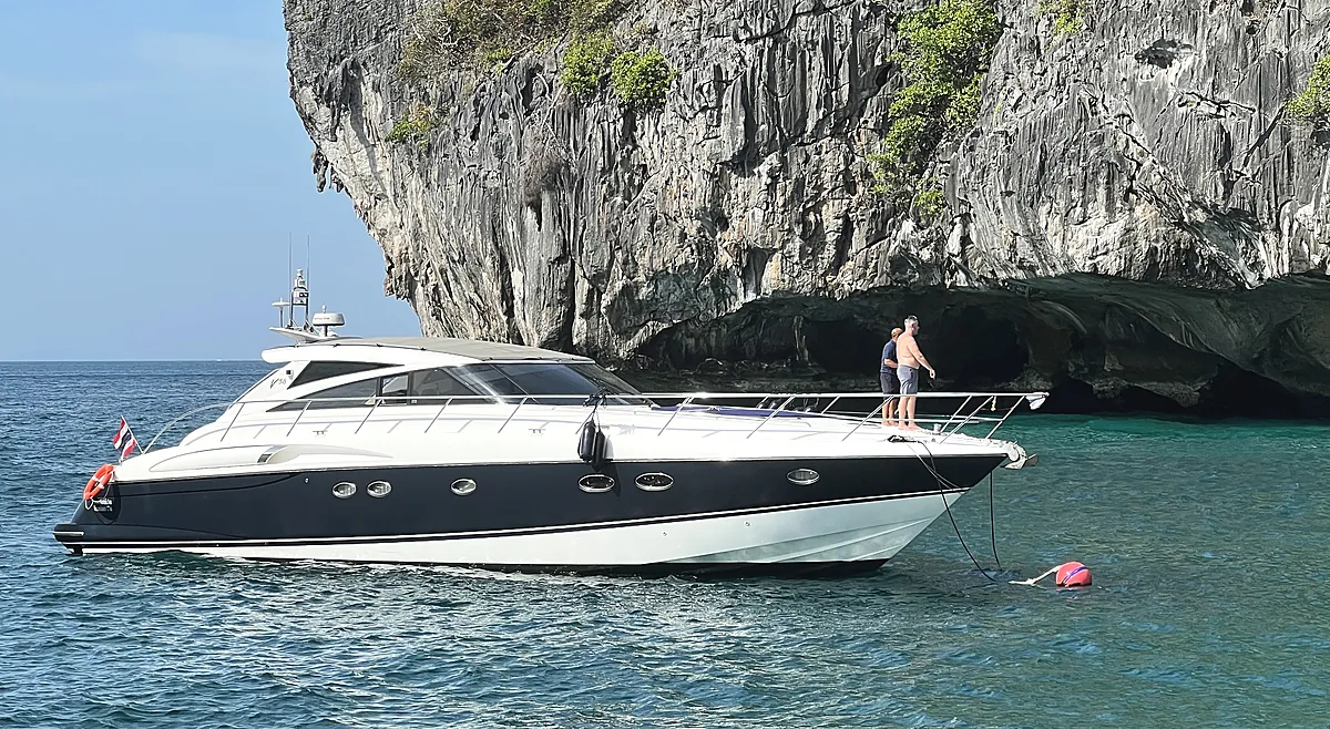 Experience luxury aboard Bonnie, our renowned 2018 Princess V58 for charter in Phuket. Accommodating up to 17 guests, this sleek and sportive yacht cruises at a swift 17 knots, perfect for island hopping adventures in Phuket's stunning waters!