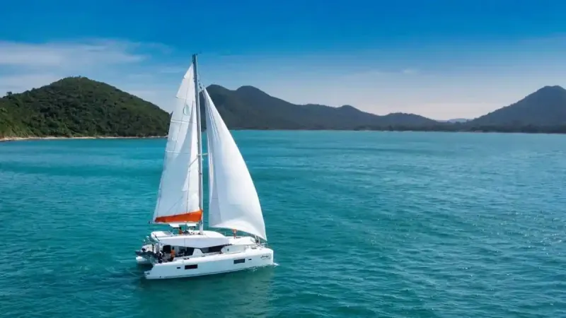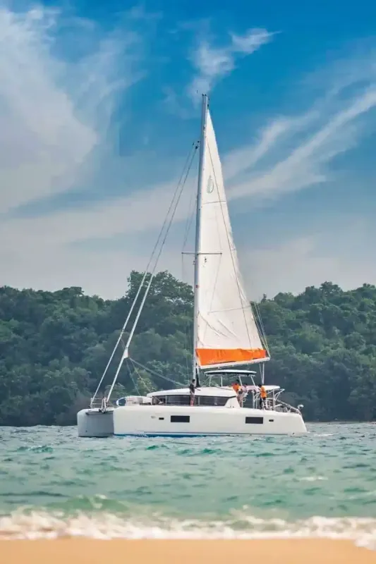 This sleek Lagoon catamaran for charter in Koh Samui is designed for comfort and performance, with space for up to 15 day guests. The sleeping accommodations for 8 in 4 air-conditioned cabins, each with its own ensuite bathroom, make her the best choice for for multi-day cruises around the islands of Samui.