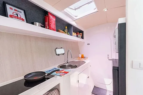 This luxury sailing Catamaran for Charter in Samui designed by the well-known UK-based boat designer and build in Thailand for tropical waters. With its spacious deck and salon, as well as a wide-decked platform at the stern its perfect for groups up to 18.