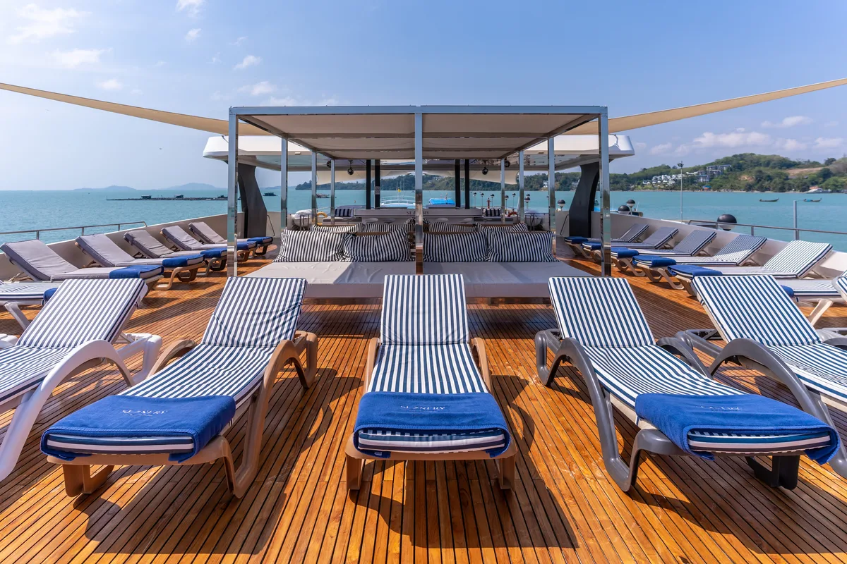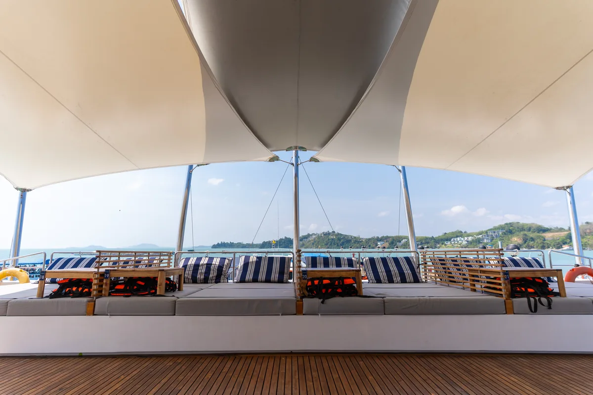 The possibilities are almost unlimited - from culinary delicacies and drinks to decoration, DJ and live music. Not to forget the water toys including big slider. Thanks to the stability with which the catamaran cruises through the water, guests can relax and enjoy the wonderful journey.