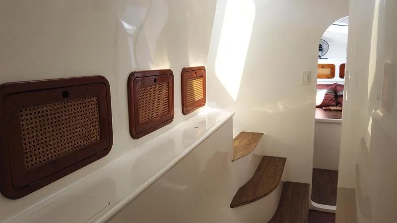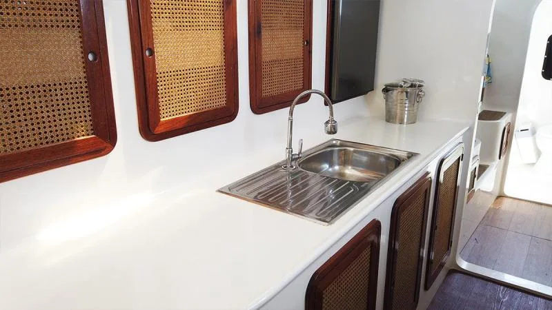 Mombay offers plenty of space for up to 15 people on day tours, and up to 8 people (plus 2 children) on cruises lasting several days. Thanks to the clever design, the cabins are of course well ventilated and also equipped with fans. The perfect base for days of activity and adventure on the water.
