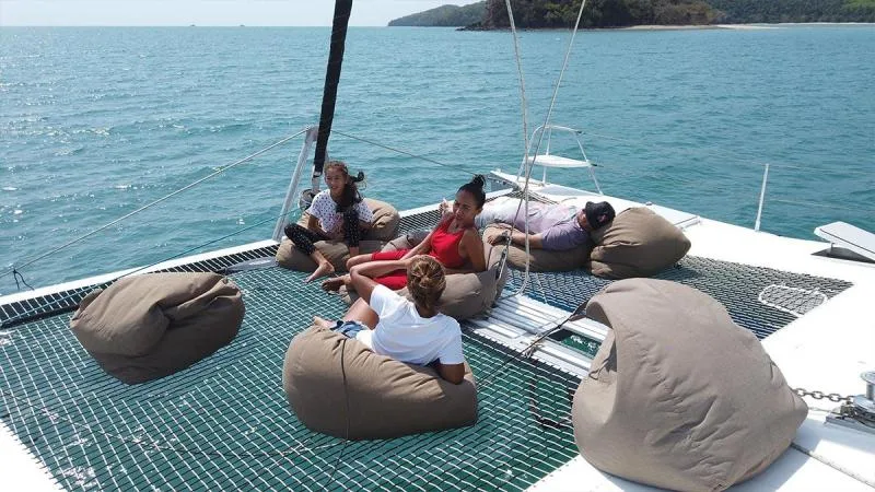 Mombay offers plenty of space for up to 15 people on day tours, and up to 8 people (plus 2 children) on cruises lasting several days. Thanks to the clever design, the cabins are of course well ventilated and also equipped with fans. The perfect base for days of activity and adventure on the water.