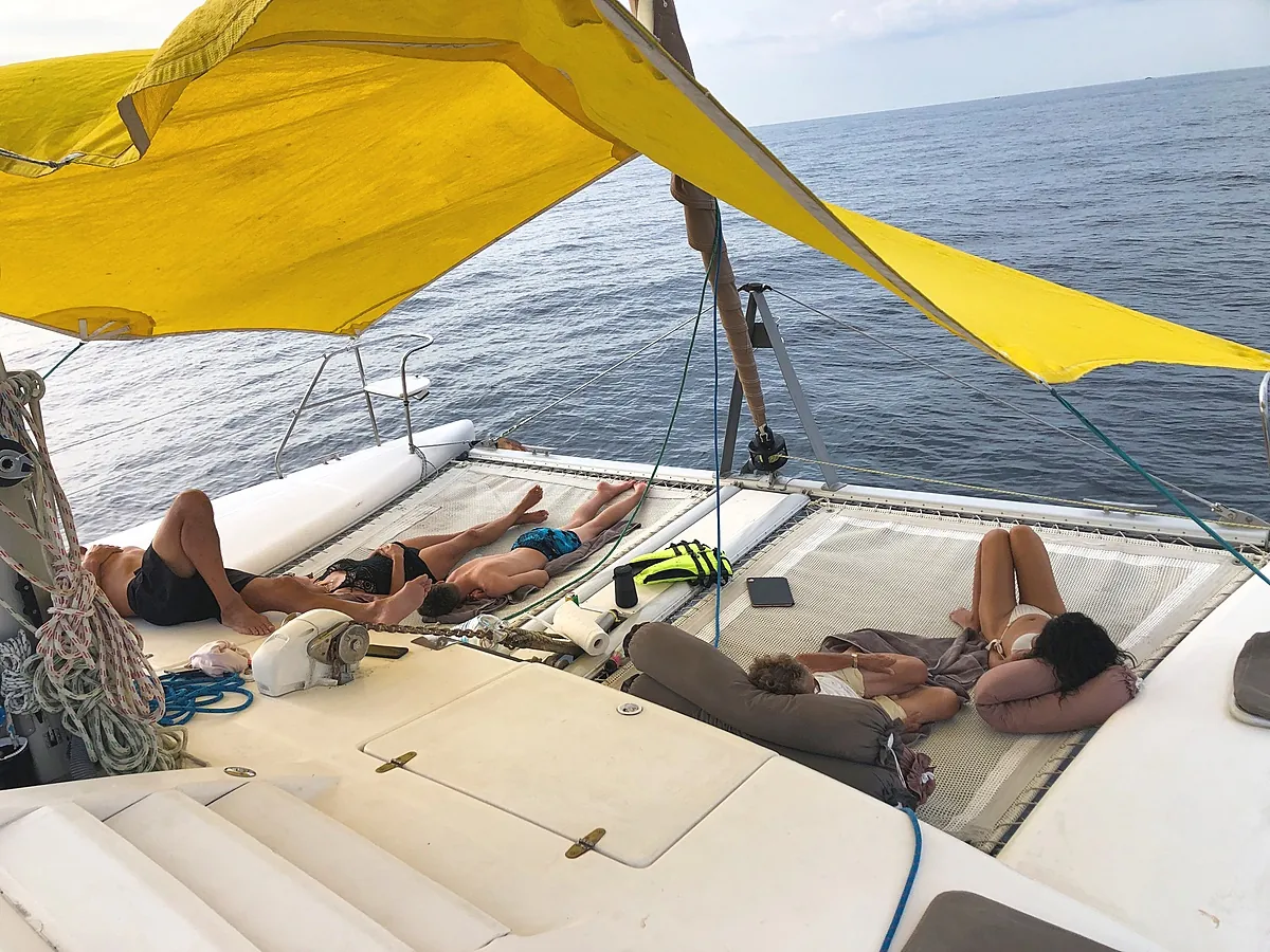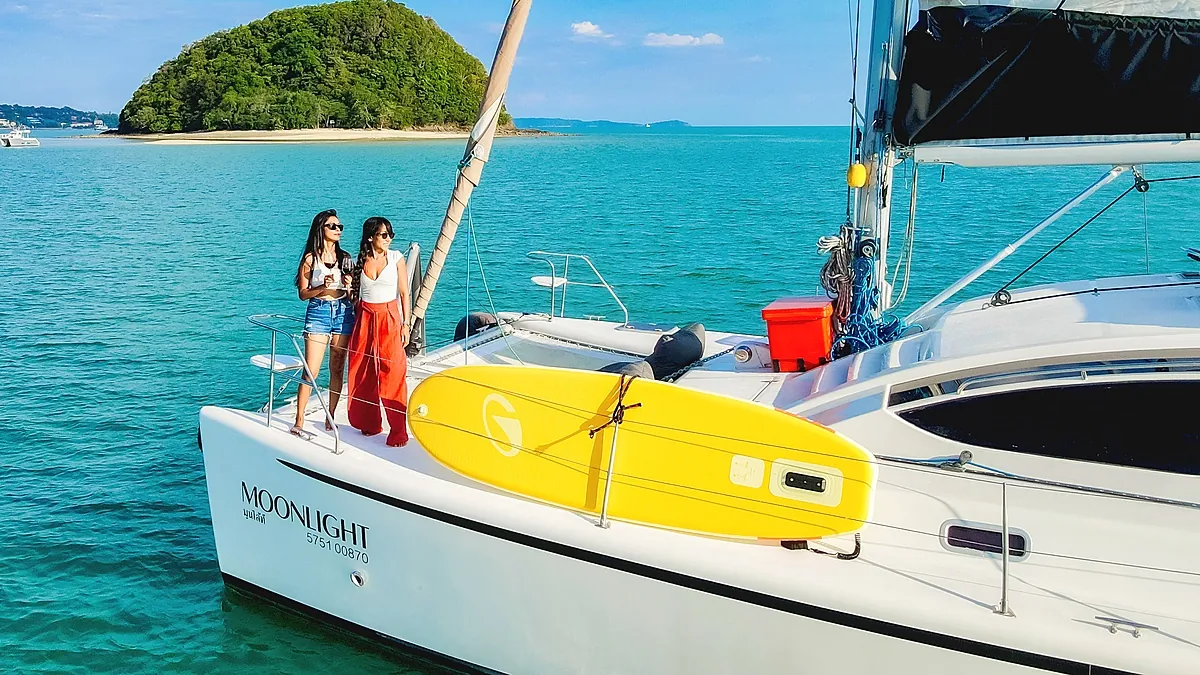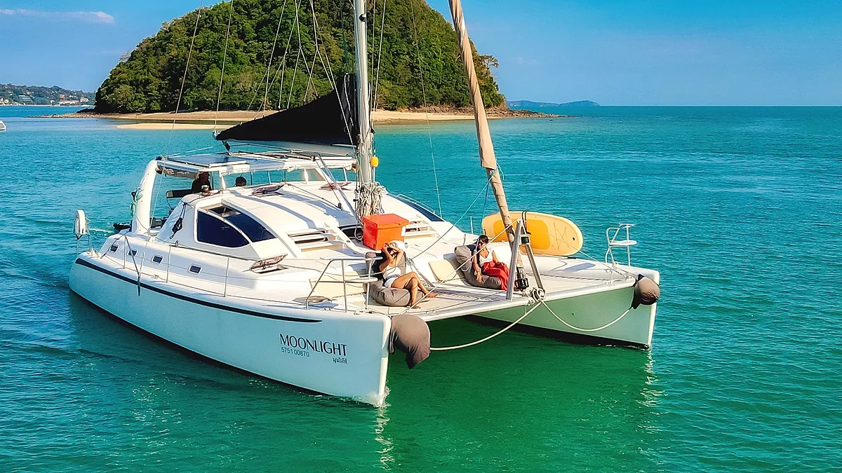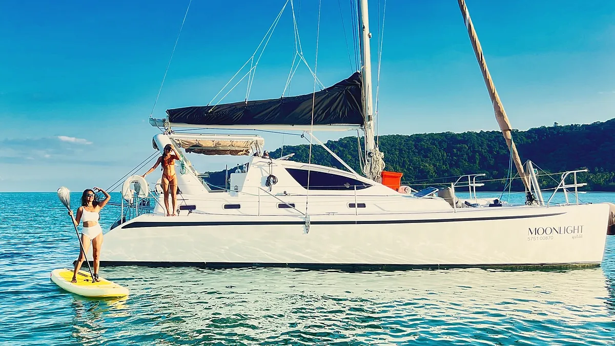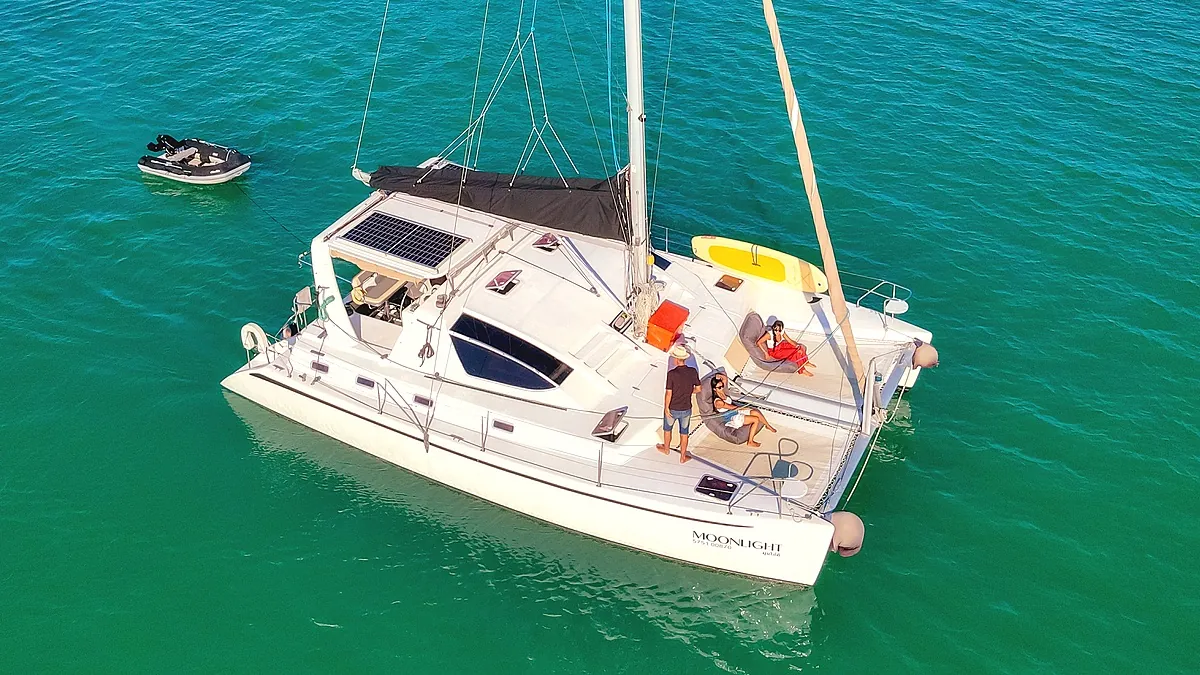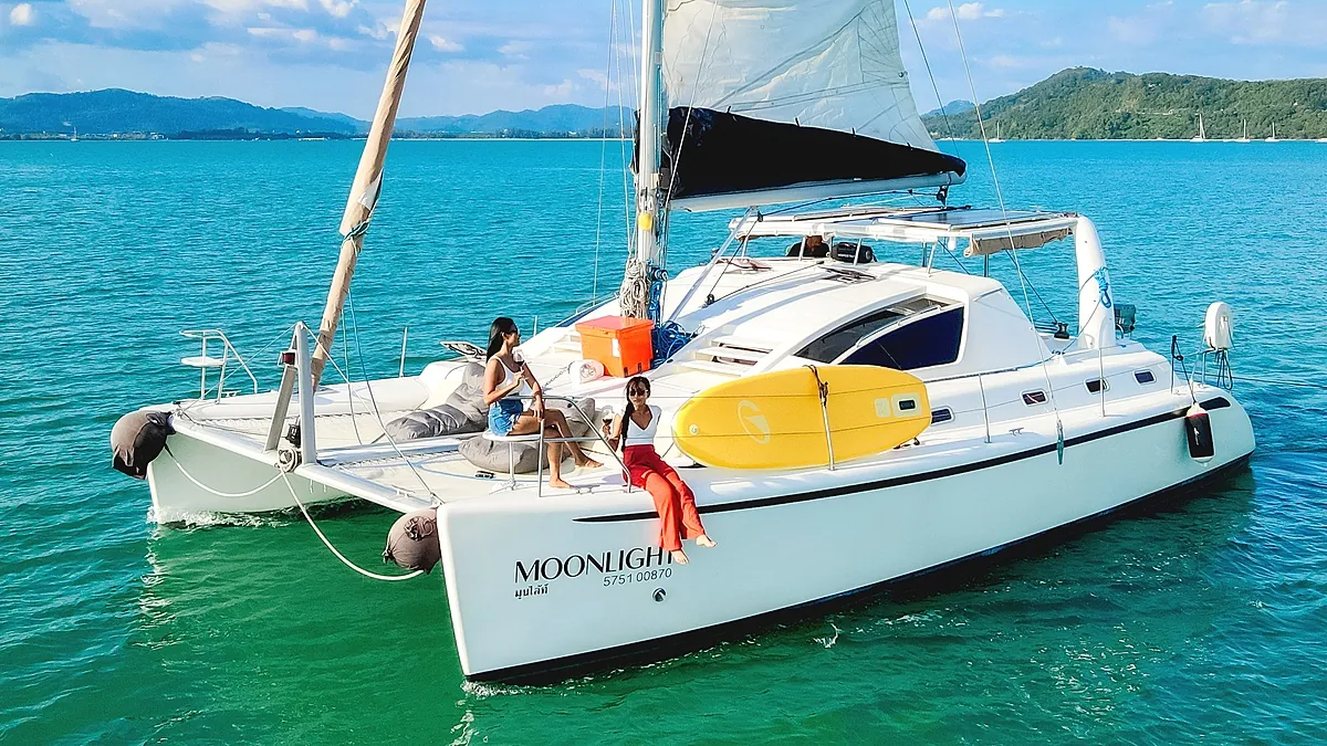 A stylish gem among Phuket's charter fleet, Moonlight is perfect for small groups of up to 10 guests (registered for 20) or 4 overnight guests seeking an authentic sailing experience in the Andaman Sea. Her thoughtfully designed layout maximizes comfort and deck space, while twin-hull stability ensures smooth sailing for everyone aboard.