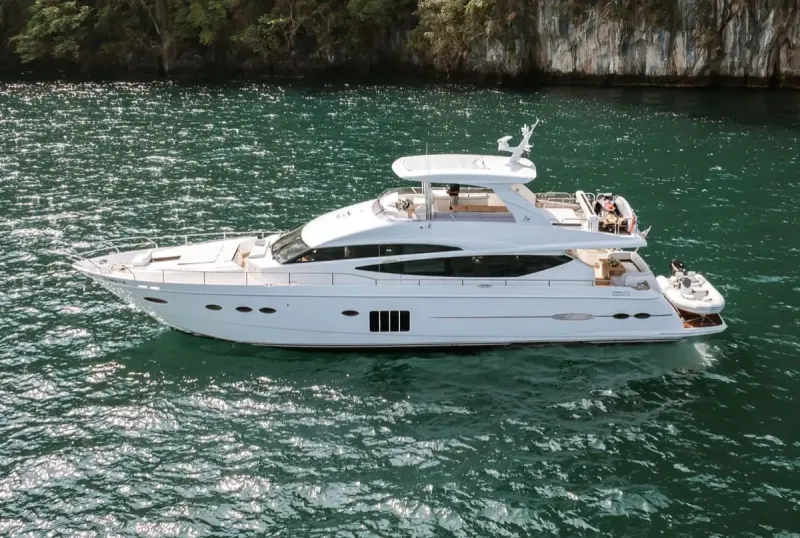 Experience the best of Phuket Charters in complete comfort aboard thiis beautifully refitted Princess 78. Designed for space, elegance, and effortless cruising, she is the perfect choice for families, friends, or small groups up to 20 looking for an exclusive day on the water.