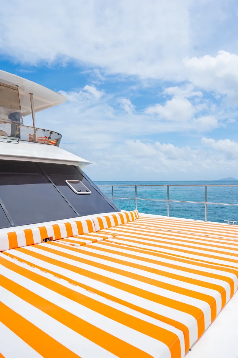 The Floeth 48 Power Catamaran is a spacious 48-foot vessel for budget charter in Phuket offering comfortable outdoor areas for relaxing and dining. With capacity for up to 40 guests, it's ideal for group celebrations and day trips.