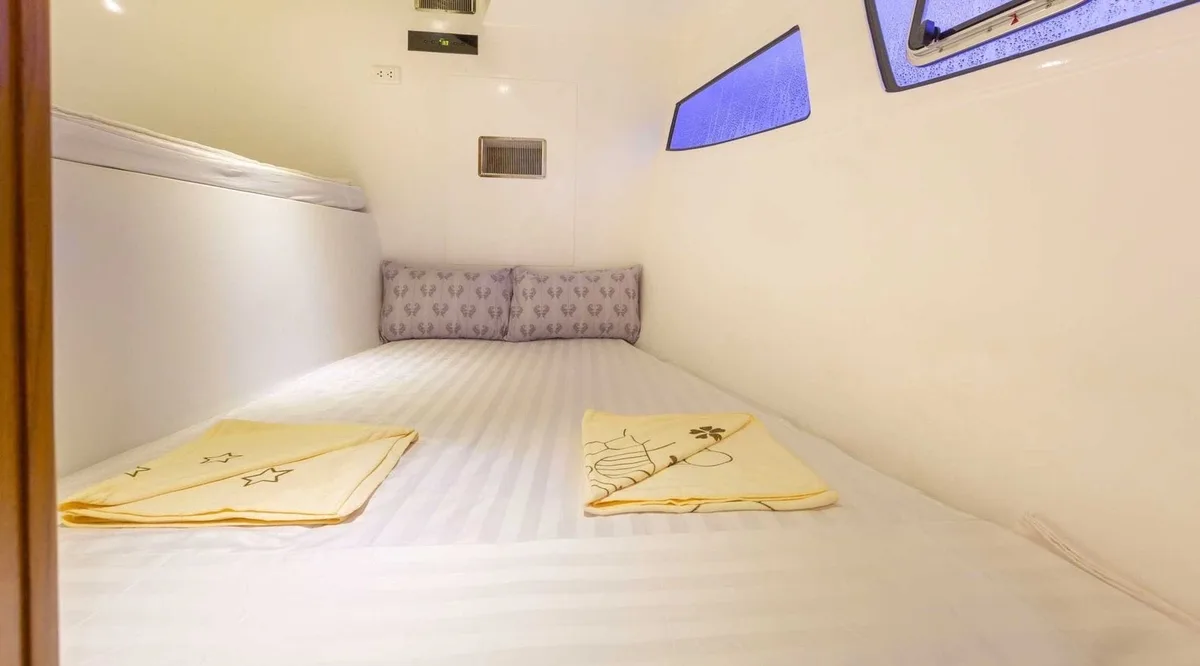 You will cruise with a speed of 7 knots on your trip to Maiton & Coral Islands (8h) and be impressed by amenities like Flying Bridge, Freshwater Shower, Multiple Decks, Multiple washrooms, Saloon as well as 2 Kayak, 2 Paddle boards, Floating Pool, Snorkeling masks, Water Slide.