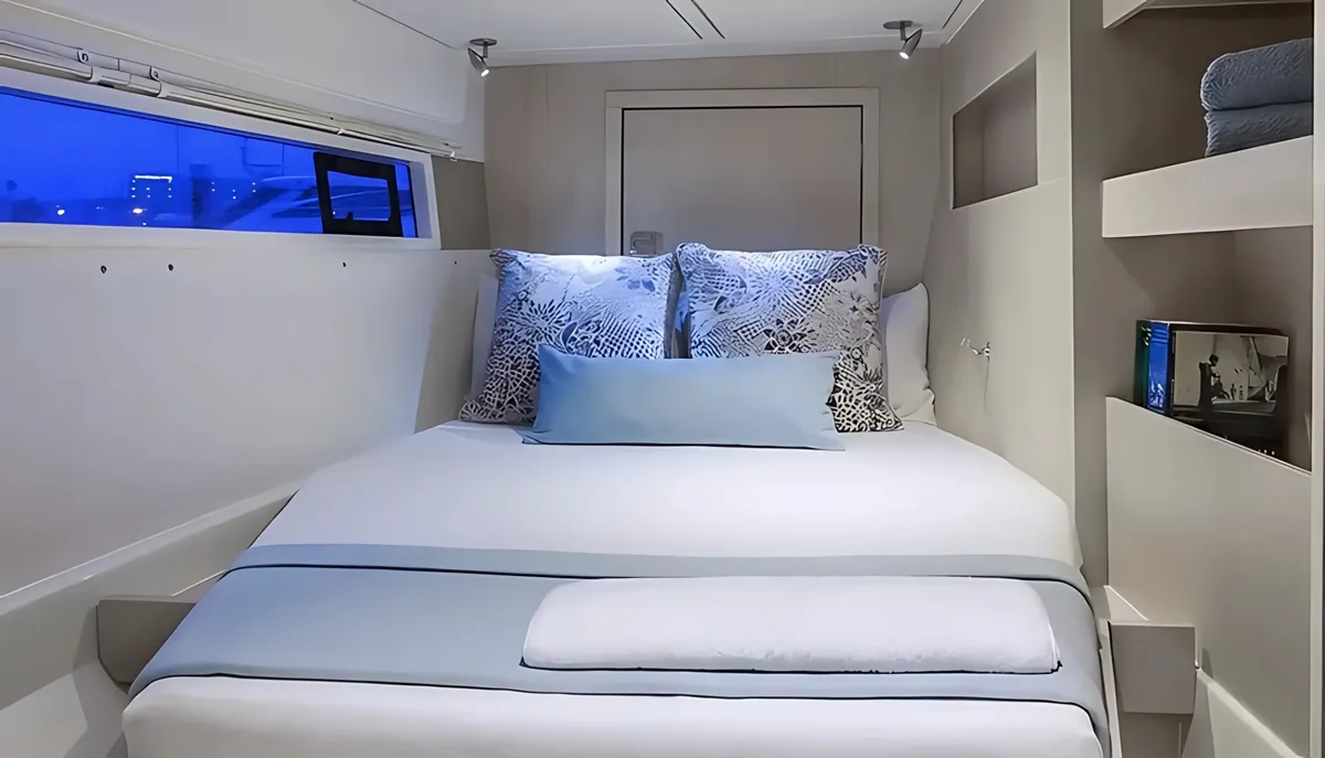 You will cruise with a speed of 13 knots on your trip to Phi Phi Island (8h) and be impressed by amenities like Flying Bridge, Freshwater Shower, Multiple Decks, Multiple washrooms, Saloon, Sun-protected area / Awning as well as 2 Paddle boards, Floating Mat, Snorkeling masks, Water Slide.