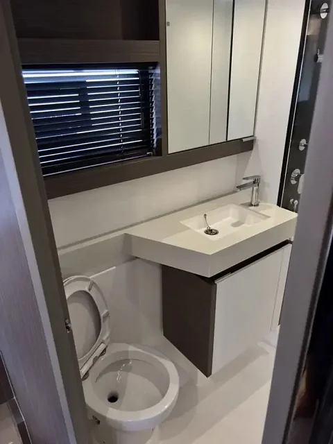 You will cruise with a speed of 18 knots on your trip to Phi Phi Islands (8hrs) and be impressed by amenities like Flying Bridge, Freshwater Shower, Hot Water, Inflatable Pool, Multiple Decks, Multiple washrooms, Saloon, Sun-protected area / Awning as well as 2 Kayak, 2 Paddle boards, Fishing gear (on request), Floating Mat, Floating Pool, Snorkeling masks, Water Slide.