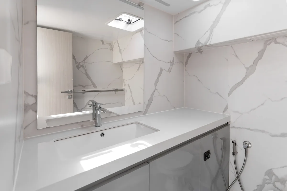 A special feature is the generous amount of space: up to 25 guests can relax on the Flybridge of this Yatch with its 360-degree panoramic view.